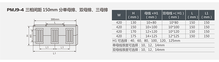 PMJ9-4三相间距120mm分单母排、双母排、三母排
