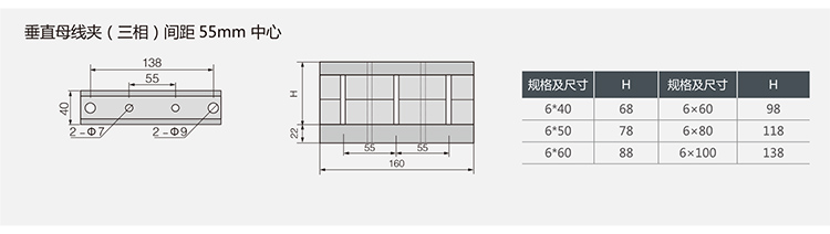 垂直母线夹(三相)间距55mm中心